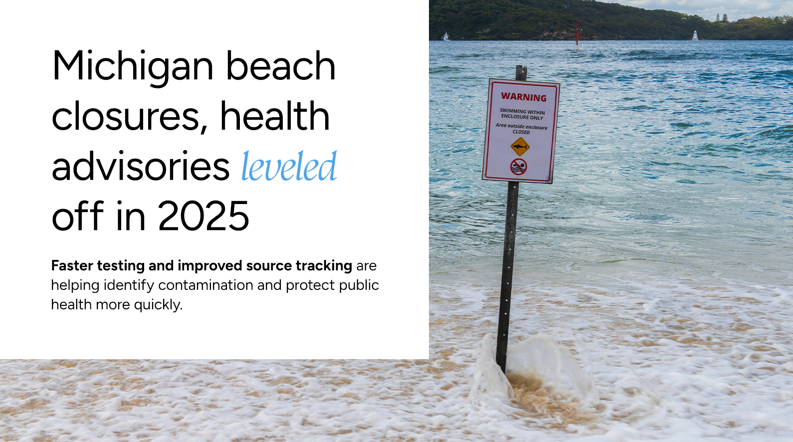The number of Michigan public beach closures and health advisories remained stable in 2025, according to statistics reported by the Michigan Department of the Environment, Great Lakes, and Energy (EGLE).